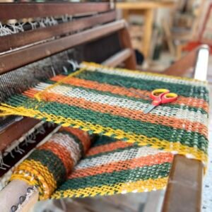 Weaving: woven on a pedal loom