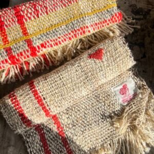 Wool: Handmade spun, woven organic wool.